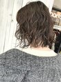 肩に付くかつかないかの長さに設定後、全体的にウェーブが出るようにパーマをかけています。スタイリングが楽なのがパーマの良いところです。