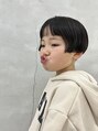 お子様カットでリアルワカメちゃんカット。襟足は刈り上げをして短く。前髪をオン眉とサイドの髪をお顔に沿うように長さを残したのがポイント