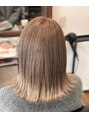 ブリーチハイライトから、ブリーチを施術し、ミルクティー系の色をオンしてあります。ハイライトで明るさのコントラストを意識したブリーチオンカラーです。