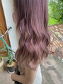 根本をブリーチでリタッチして、全体はラベンダーピンクでオンカラー☆根本から毛先にかけて、うっすらとグラデーションになる感じで色を入れてあるので、自然な色落ちになっていくので◎ガーリーなピンクカラーは、一年中オーダー多数です♪