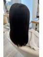 絹のようにしっとりなめらかなツヤストレートです!!朝起きてブラシを通して毛先と表面にオイルオンするだけ♪朝の時間が劇的に楽になるストレートパーマです。