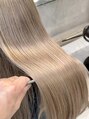少しクセが気になるけどブリーチが必要な透明感カラーがしたい人に向けた提案。他店とは違うストレートヘア+透明感カラーが手に入り、縮毛矯正ではなく、ツヤツヤでふわっと自然なストレートヘアになれる独自理論のケラチントリートメント。担当 高沼達也