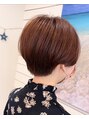 短めなハンサムショートにカット♪耳が出る長さで前下がりの設定!シャープなラインとふんわりボリューム感で大人女子のテイストに♪シャープさとボリュームのバランスが大事なスタイルです♪