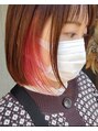 レイヤーボブスタイルの軽めにカットしたサイドの内側にインナーカラーでシュリンプピンクを入れたヘアスタイル。