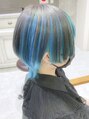 - 低ダメージケアブリーチ 透明感ヘアカラー インナーカラーにビビッドブルーカラー トリートメント