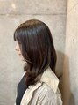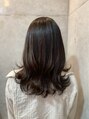 顔周りのみレイヤーを入れて、他はワンレングス。顔周りにレイヤーを入れる事により、アイロンで巻いた時に動きがでる。若干のグラデーションカラーにより、巻いた毛先の印象が軽くなる。