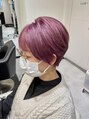ミルクティーピンク丸みショート耳掛けショートボブお客様ヘア☆/ホットペッパービューティー