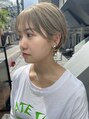大人かわいい前下がりのマッシュショートはシャープに切ったライン、襟足をしめてスッキリ見せたりと、メリハリを効かせて絶妙なバランスに!カラーはブリーチ後にプラチナベージュで透明感、質感をプラスして大人見えに!イメチェン楽しみませんか?