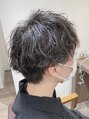 やや重さを残したマッシュショートがベース。トップにはレイヤーをいれ、パーマで束感が活きるように。波巻き&スパイラルパーマで不規則な細かい動きが出るようにしました。耳前の溜まりが出る所はツーブロック。襟足は刈り上げない程度にすっきりと。