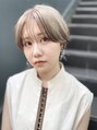 大人かわいい前下がりのマッシュショートはシャープに切ったライン、襟足をしめてスッキリ見せたりと、メリハリを効かせて絶妙なバランスに!カラーはブリーチ後にプラチナベージュで透明感、質感をプラスして大人見えに!イメチェン楽しみませんか?
