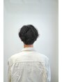 センターパートにして、ツイストスパイラルパーマをかけました。甘くならないパーマスタイルです。