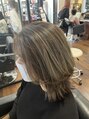白髪を活かして根元から美しいしいバレイヤージュです。白髪をしっかり染めずに、ハイライト部分と同じ色にすることで、綺麗に馴染んでくれます!これなら伸びてきた時もくっきり染めてる部分と染めてない新しく生えた部分の線が出なくなります。
