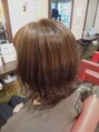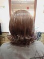 イヤリングカラー。ベースはプラチナブラウンで染めました。イヤリングカラーの部分は紫に。くすみカラーとイヤリングカラーがマッチして可愛い仕上がりになります!