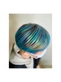 青~青緑のグラデーションカラー+ポイントで多色遊び/ホットペッパービューティー