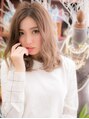 【スタイルは★ブックマーク★が便利】赤味のないアッシュ系やベージュ系ハイトーンカラー&くせ毛風アンニュイカールで外国人風な印象☆斜めバングやセンターパートでフェミニンに、厚めバングやワイドバングも大人かわいい。前下がりで小顔効果もバッチリ。