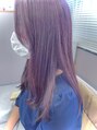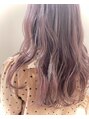 サイドバングがかわいいレイヤースタイル。グレージュ×パープルで柔らかく落ち着いた髪色に。