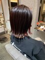 インナーカラーレッド切りっぱなしボブ【NABLA】倉敷美容室