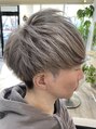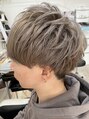 サイドツーブロック、襟足は刈り上げをしたマッシュスタイル。ブリーチ2回ベースからシルバー系カラーを入れました。