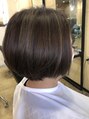 前下がりボブスタイルです。 後頭部に丸みを持たせて、バックからサイドになだらかにラインを作ってあります。 細めハイライトをシルバーとサファイアで黄ばみを消してます。