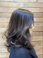肩下のミディアムヘアです。地毛が明るいベージュカラーのお客さまなので、カラーはせずにパーマで扱いやすいヘアスタイルにしています!