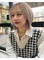 ホワイトベージュでボブでも可愛くなり過ぎないように。さりげなくイヤリングカラーでブラックを入れて。