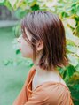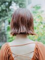 ウェット感や束感のある切りっぱなしボブ。長めのバングにもしっかりと束感を出すことで顔周りがすっきりとし、明るく見えるのでオススメです。暖色系のカラーで柔らかさがでるのでクールになりすぎず女性らしさがでてとても可愛いです。[西千葉/西千葉駅]