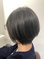 人気のショートスタイルにたっぷりのハイライトを入れて、その上にブルーアッシュグレーを濃く入れて動きあるお洒落ヘアに♪