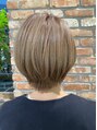 ハイトーンのショートスタイル。ブリーチでしっかり赤味を抜いてから薄めのベージュでカラーしました。!