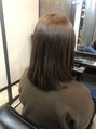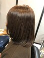 ブラウンにグレーを混ぜて、くすみカラーに♪ハネづらい長さの鎖骨下までばっさり切りました。前回やった髪質改善ストレートの効果がまだ効いてる&ツヤの出るカラー剤でさらにツヤツヤでした♪♪