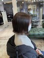 透明感カラーブラウンベージュ切りっぱなしボブ小顔カット