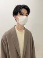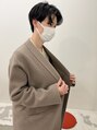 センターパートのマッシュスタイル。髪を曲げるくらいのゆるめパーマをナチュラルに仕上げました。