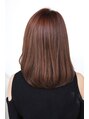 ベースカットは重めに切ってまとまりを出したストレートのセミロングスタイルです。カットベースはローレイヤー。全体の量はほとんど変えていないのではねることもありません。カラーは10トーンパールベージュカラーでツヤ感と透明感をプラスしました。