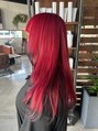 黒髪のベースにブリーチハイライト を入れ、ブルー系のカラーを重ねると、地毛の中にも透け感や、巻いた時の動きの手伝いをしてくれます!