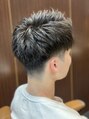 高めの刈り上げで爽やかな印象のアップバングショートです。