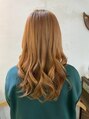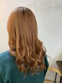 ブリーチしてあるベースにアプリコットオレンジにカラーさせていただきました。トリートメントも内部補修トリートメントにしてダメージを最小限に抑えております