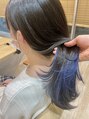 ケアブリーチを使用した優しいデザインカラー!オージュアの髪質改善トリートメントでさらに艶やかな仕上がりに!1ブリーチでもネイビー系なら高発色!