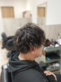 動きが出にくいお客様にツイストスパイラルパーマ。パサつきやすいパーマなので、スタイリング剤等で艶感出しましょう。
