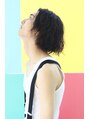 ゆるめのスパイラルパーマをグリースで艶出し。センターパートに分けてアレンジ。