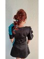 ワインレッドのヘアカラーリングに可愛くトップふわふわタマネギヘアーでアレンジして仕上げました☆