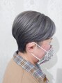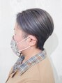 襟足をスッキリさせながらも丸みをつくるハンサムショート♪サイドもかりあげてスタイリッシュに。シルバーのメッシュとグレーので白髪ぼかしのおしゃれヘアに。ブリーチ必須です。《気に入って頂いたスタイルは、是非ブックマークをしてご提示ください》