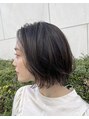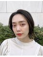 パツッとしたラインを残したアゴラインの切りっぱなしボブスタイル。長めに残した前髪で落ち着きのある大人の印象に。乾かしてオイルをつけるだけの簡単スタイリングです。