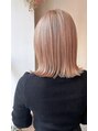 ○お客様のスタイルです。【スタイルは、ブックマークをしてご提示よろしくお願い致します】ミディアムスタイルです。仕上げに、コテで外巻きにしています!!仕上げは、バームをつければ簡単!カラーは、全体ブリーチ二回にon colorでピンクベージュに!!