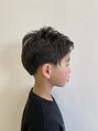 春先に合わせ、アンダーを刈りトップをふんわりと仕上げました。アウトラインをキッズだからこそ出来るパツっとした重いスタイルにする事で特別感がありつつバックがキレイに見える様にしてます。