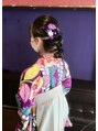 卒業式 長さは肩位のボブベースでインナーカラーがでるように編み込みをしてまとめました。