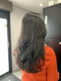 ブリーチなし暗め透明感カラー。赤味、オレンジ味を極限まで抑えたオリーブ系カラーです。大人女性に人気のレイヤースタイルです。