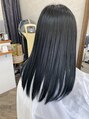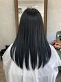 ブルーブラックに染めたロングヘアでクールでキュートな雰囲気に♪カットは長さがあるのでラウンドシルエットで軽さが入った仕上がりにカラーは前にハイライトが入っていたので伸ばしかけで色落ちの変化も楽しめるブルーブラックをチョイス(笑)