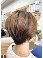 女性に人気のショートボブ。可愛くも、大人っぽいかっこよさもいろんなバリエーションを楽しめます。ポイントはバックのトップのボリューム間からのネープのシャープなスッキリ感。耳にかけても、おろしても可愛い前下がりベースのショートレイヤーボブ。