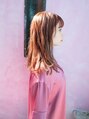 鎖骨下、胸上の切りっぱなしベースに顔周りだけ丸みを感じるレイヤーを入れて動きと軽さを。前髪は広めに作り軽さもありながら ぱっっとしたラインを残す事で甘くなりすぎず大人な可愛さを。カラーは透明感をたっぷり出したシナモンピンクベージュに。