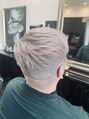 サイドからバックは短めのツーブロック 前髪は長めのアシンメトリーにし上げてスタイリングカラーはホワイト系カラーにチェンジホワイト系カラーはブリーチ施術ありの特殊カラーになります特殊カラーはお電話のみのご予約制となります