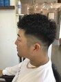 ツーブロック刈り上げでスッキリさせ緩めのパーマをかけてます。